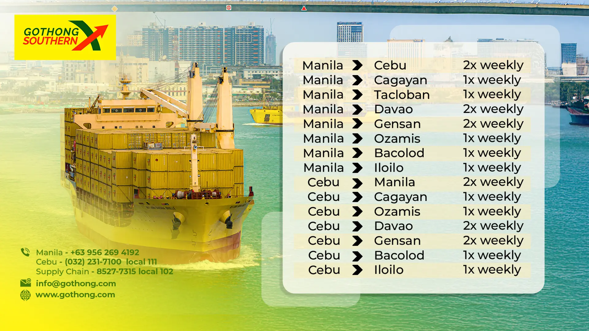 Gothong Southern provides nationwide logistics solutions with an extensive network of ports, terminals,